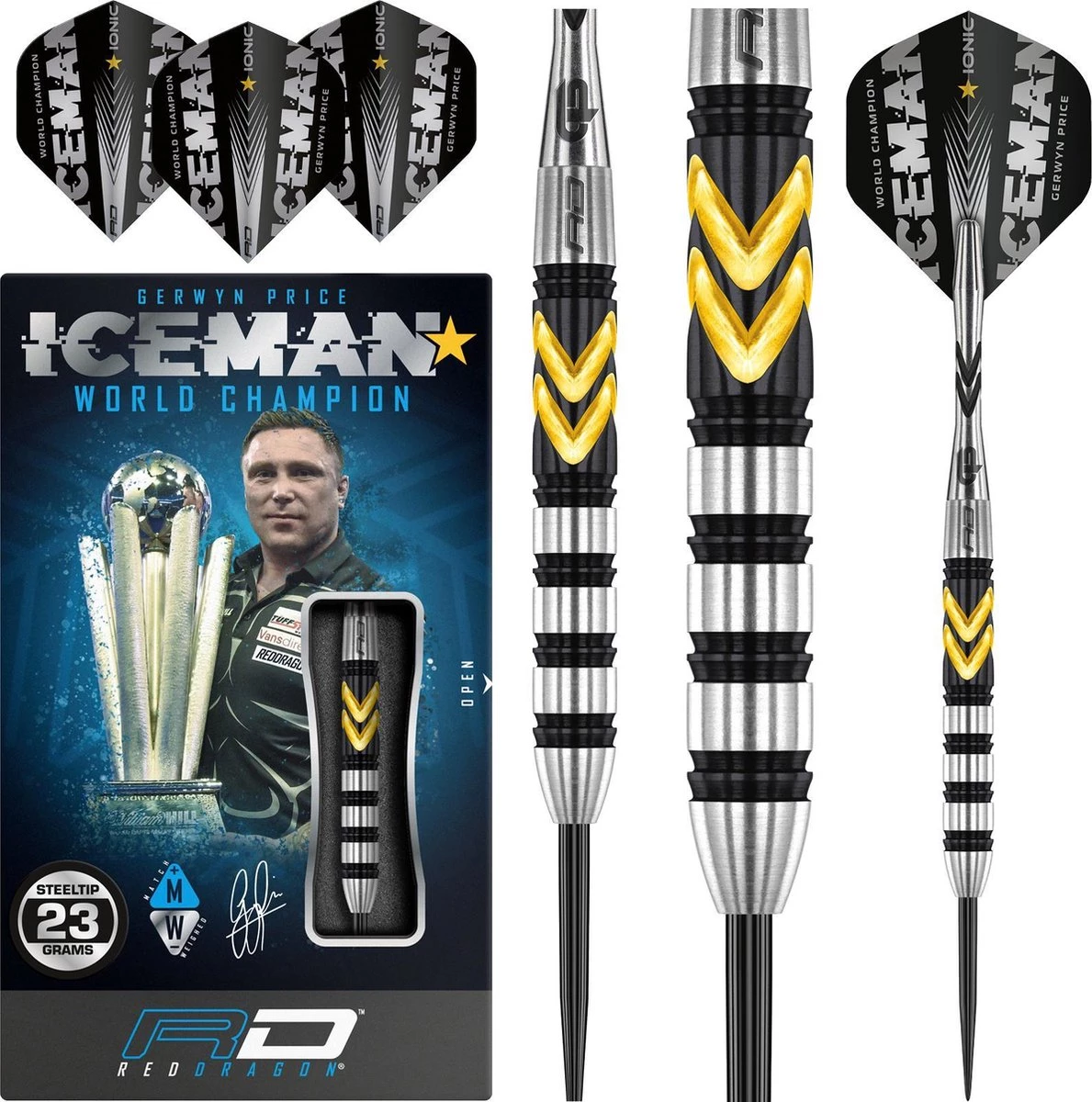 Set 23 grammes – 90% de fléchettes professionnelles Tungsten Steeltip. Set de fléchettes est livré avec des arbres de fléchettes Nitrotech.Fléchettes red DRAGON Hardcore Extra épais.ICEMAN RENCONTRE LA FOUDRE. MÊME CONCEPTION. BELLE COOPÉRATION. Indéniablement ICEMANQu’obtenez-vous lorsque vous mélangez de la foudre avec de la glace ? La dernière gamme Iceman Thunder SE. Ces fléchettes sont inspirées des Iceman Originals et du lancer dévastateur de Gerwyn. Iceman Thunder SE crie un style et des performances élégants, combinés à la dernière technologie de montage. Les rayures Thunder sont combinées à un style noir mat luxueux – un clin d’œil à Iceman, qui a remporté de façon spectaculaire le championnat du monde PDC et la première place mondiale la même année. Iceman Thunder SE – une collaboration de style hors du commun et beaucoup, beaucoup d’Iceman moderne.