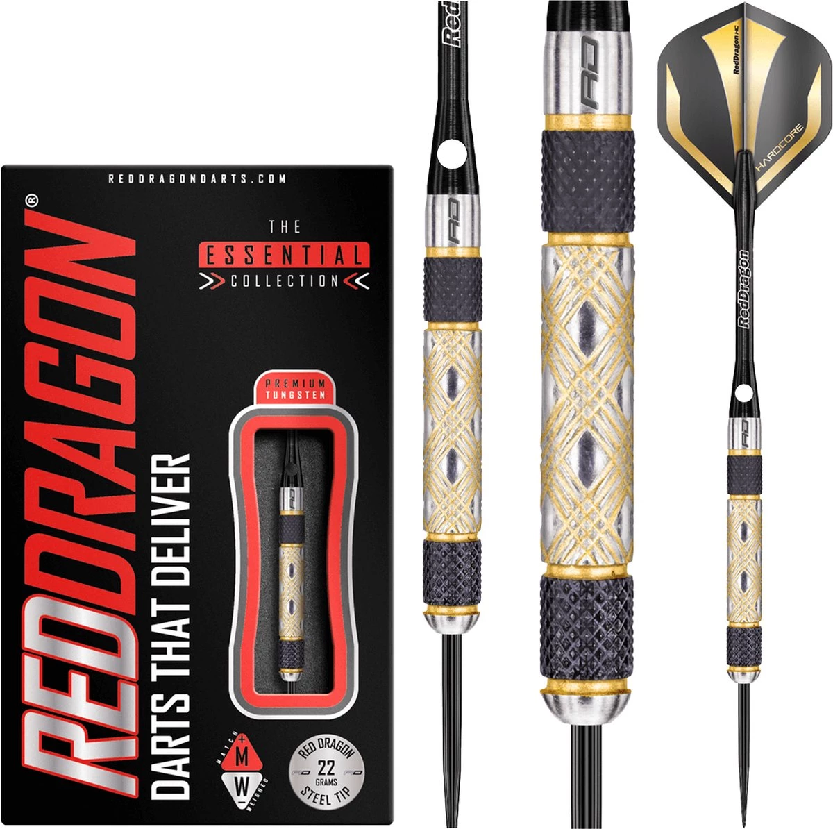 Set 22 grammes – Fléchettes professionnelles 85% Tungsten Steeltip. Set de fléchettes est livré avec des arbres de fléchettes en aluminium. Fléchettes red DRAGON Hardcore Extra épais.Best ventes de fléchettes, année après année.Les Golden Eyes sont également disponibles dans des poids de 22, 24, 26, 28, 30 ou 32 grammes.