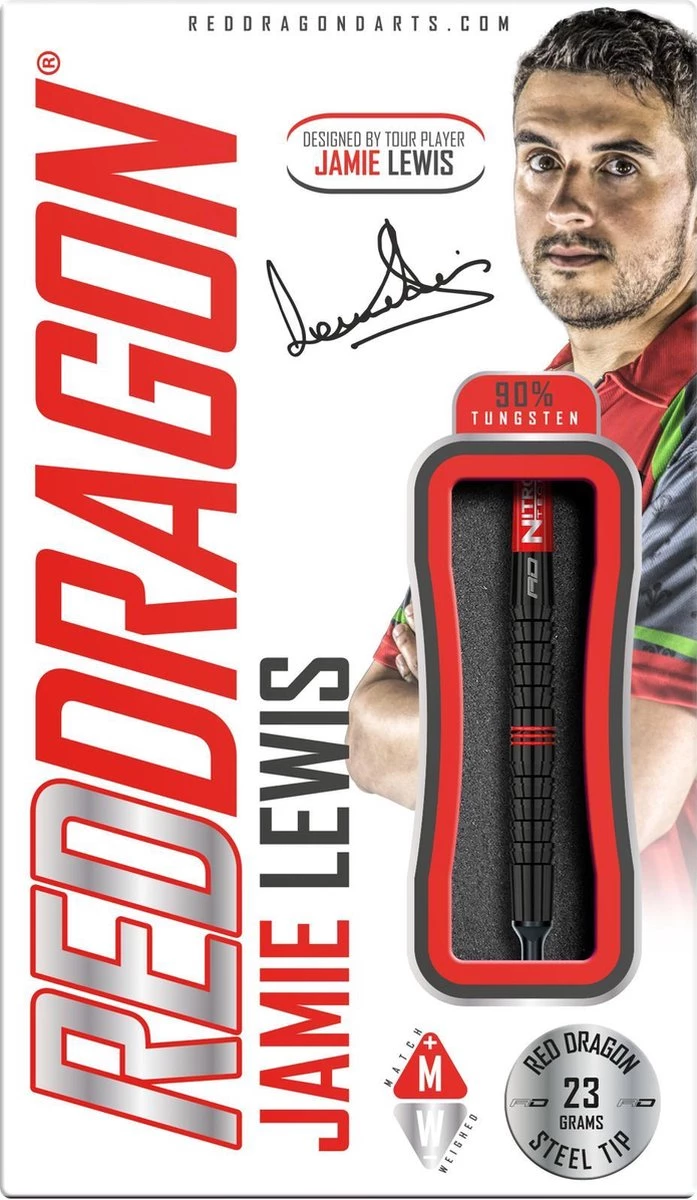 Jeu de 23 grammes – fléchettes professionnelles 90% tungstène. Le jeu de fléchettes est livré avec des fléchettes Nitrotech et des fléchettes RED DRAGON Hardcore extra épaisses.