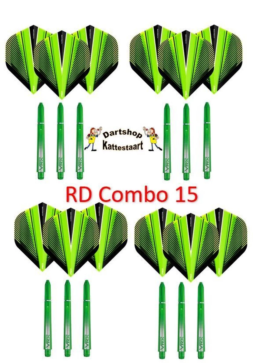 Bel ensemble combo composé de 4 ensembles de manches vert moyen Red Dragon Design VRX et de 4 ensembles de Red Dragon Design Hardcore Lancées.
