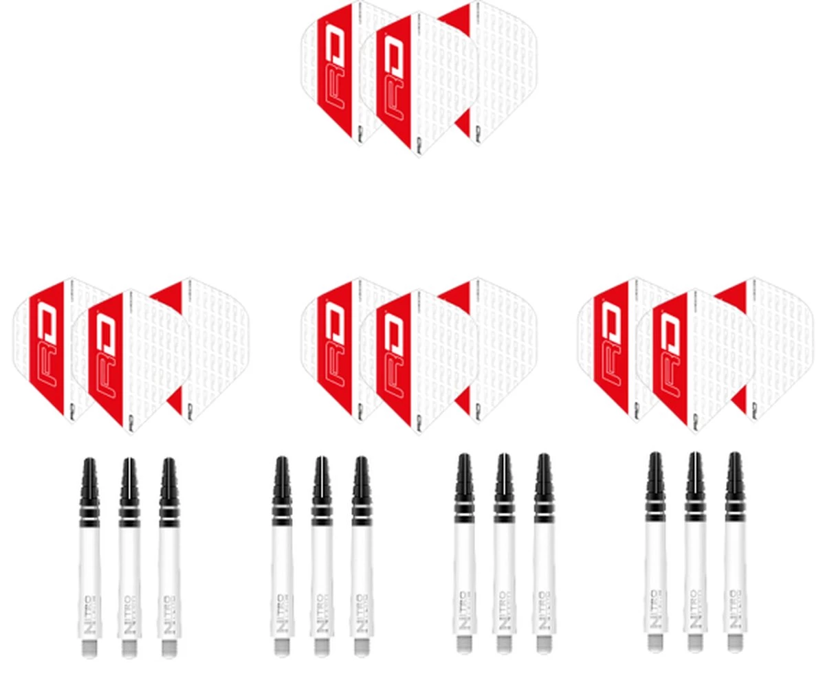 Ensemble combo très puissant composé de 4 ensembles de tiges blanches moyennes Red Dragon Design Nitrotech et de 4 ensembles de Red Dragon Design Hardcore Lancées.