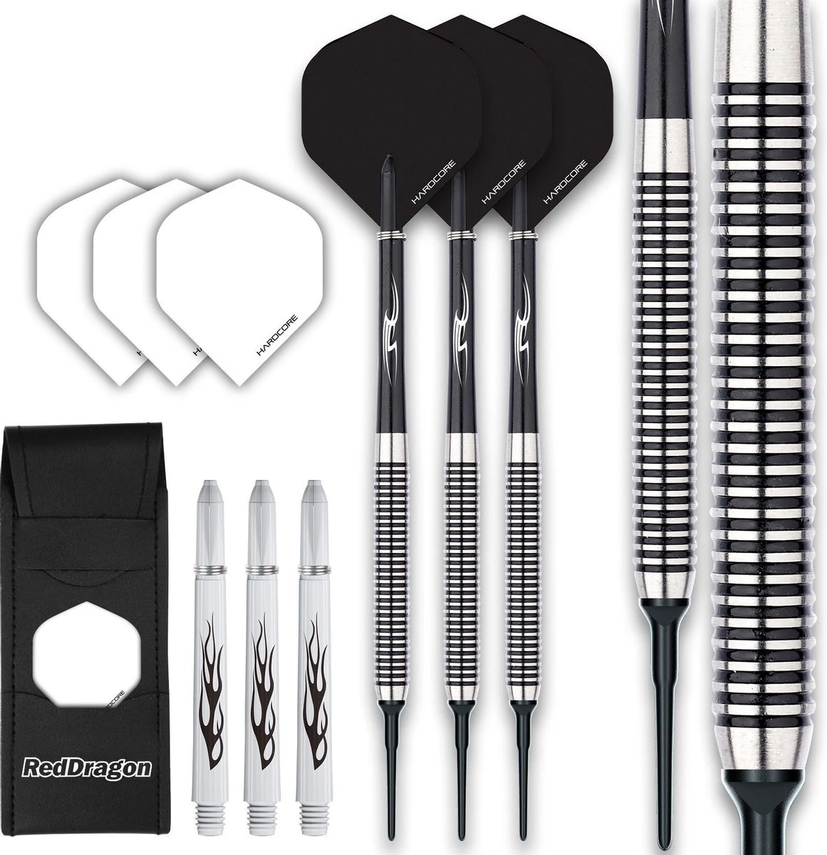 Set de 16 grammes de poids de canon, 18 grammes de poids total – 80% de fléchettes professionnelles Softip en tungstène. Set de fléchettes est livré avec des arbres de fléchettes en nylon Ring Grip. Fléchettes red DRAGON Hardcore Extra épais.Red Dragon .Les Pegasus Blacks sont également disponibles dans des poids de 18 ou 20 grammes.