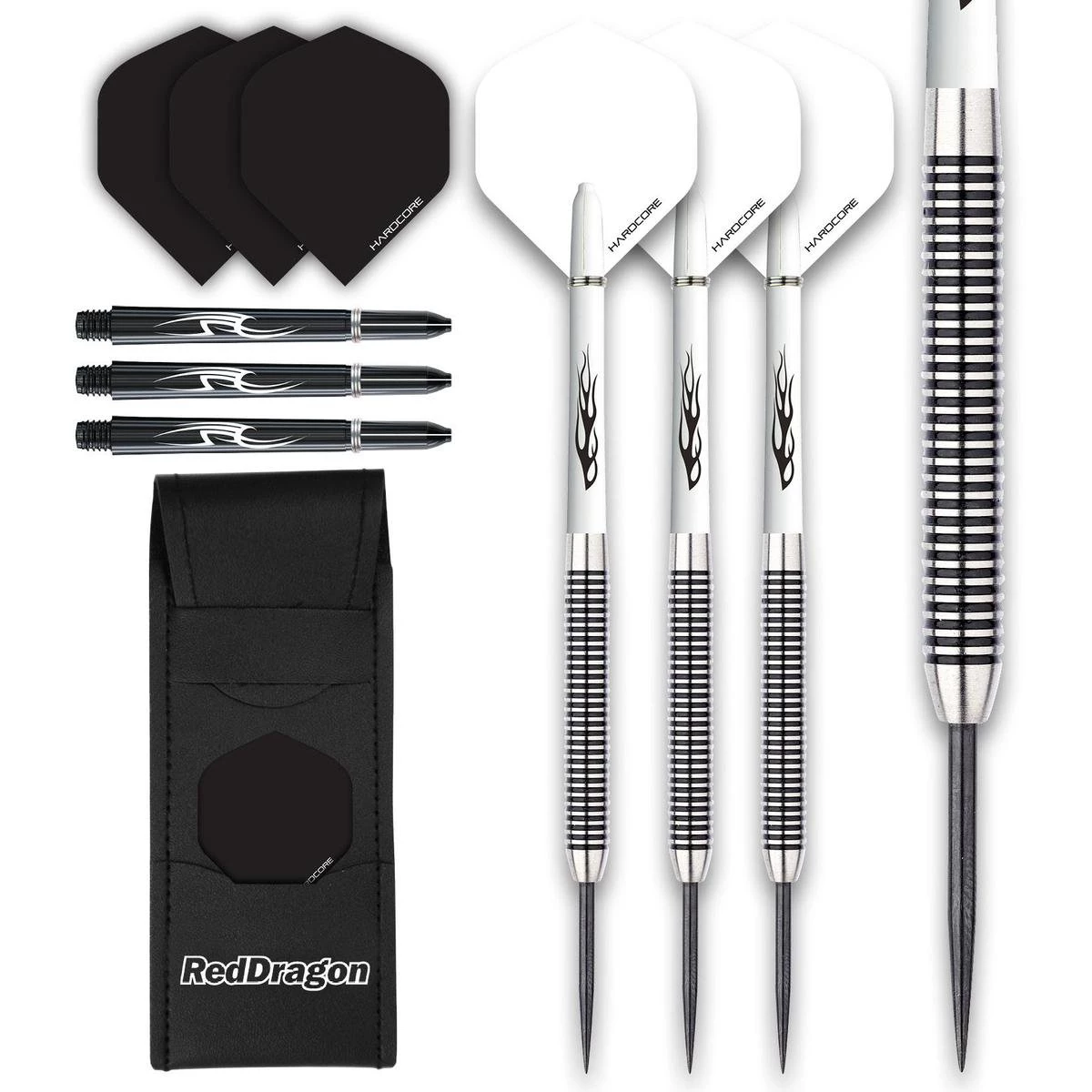 Set de 23 grammes – flĂ©chettes professionnelles 80% Tungsten Steeltip. Set de flĂ©chettes est livrĂ© avec des arbres de flĂ©chettes en nylon Ring Grip. FlĂ©chettes red DRAGON Hardcore Extra Ă©pais.Red Dragon .Les Pegasus Blacks sont Ă©galement disponibles dans des poids de 21, 23, 24, 25, 26, 28 ou 30 grammes.