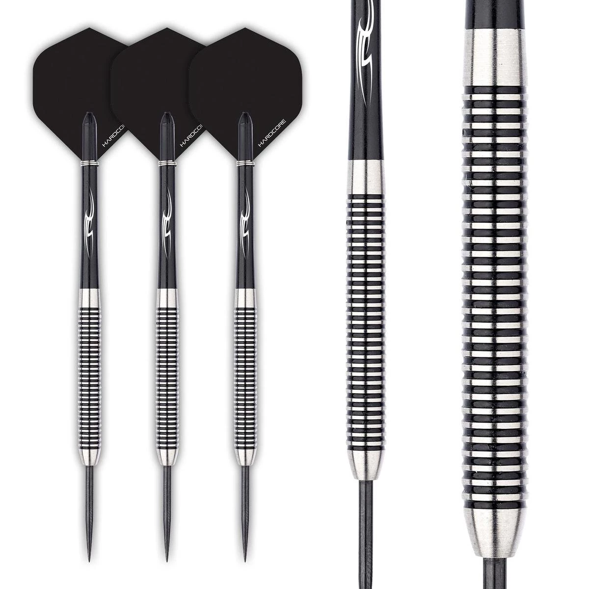 Set 28 grammes – fléchettes professionnelles 80% Tungsten Steeltip. Set de fléchettes est livré avec des arbres de fléchettes en nylon Ring Grip. Fléchettes red DRAGON Hardcore Extra épais.Red Dragon .Les Pegasus Blacks sont également disponibles dans des poids de 21, 23, 24, 25, 26, 28 ou 30 grammes.
