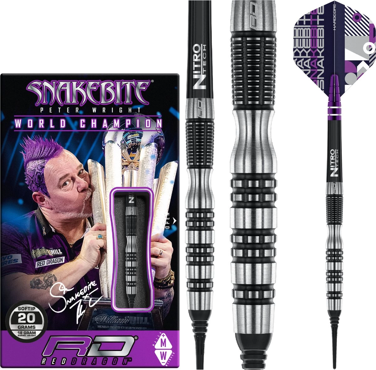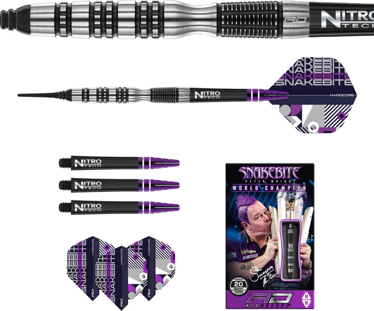 ✅ Peter Wright Snakebite – Black Racer 90% Soft Tip – Fléchettes: