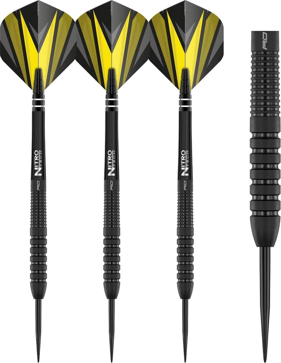 Set 23 grammes – 90% de fléchettes professionnelles Tungsten Steeltip. Set de fléchettes est livré avec des arbres de fléchettes Nitrotech.Fléchettes red DRAGON Hardcore Extra épais.