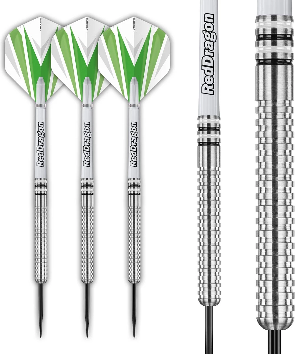 Set 23 grammes – Set de 3 x fléchettes en tungstène de qualité premium Red Dragon . Le Set de fléchettes est livré avec des fléchettes en nylon Ring Grip, 3 jeux de fléchettes RED DRAGON Hardcore extra épais. Red Dragon . Ces flèches de coupe usinées avec précision ont une excellente adhérence le long de leurs canons minces et profilés. Disponible en poids de 23 g.