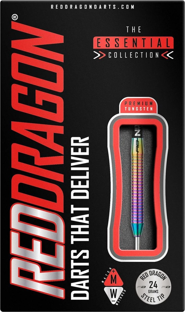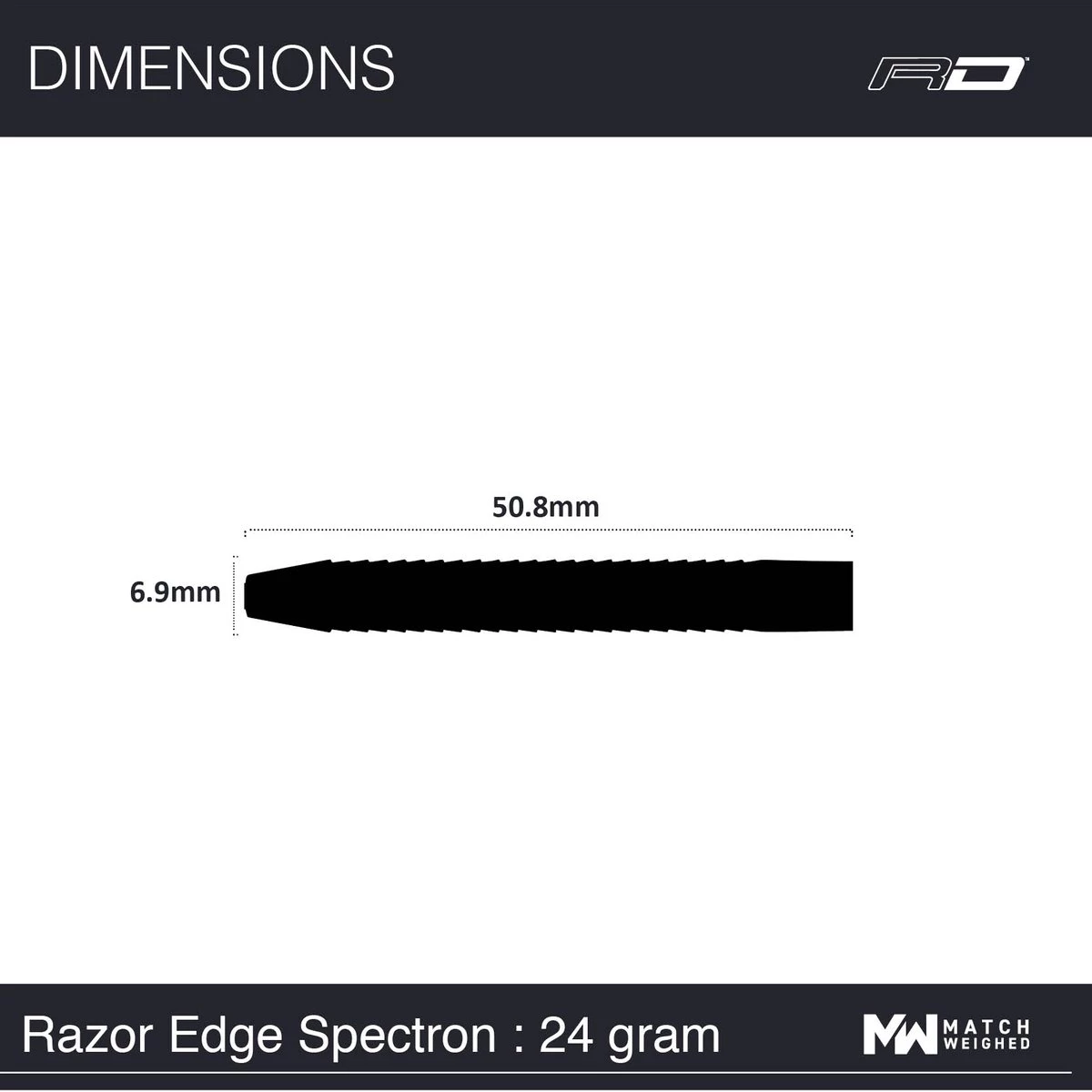 Set 24 grammes – Fléchettes professionnelles 85% Tungsten Steeltip. Set de fléchettes est livré avec des arbres de fléchettes Nitrotech. Fléchettes red DRAGON Hardcore Extra épais.Revêtement PVD passionnant avec la technologie de préhension agressive Razoredge.Les spectrons Razor Edge sont également disponibles en poids de 20, 22, 24 ou 26 grammes